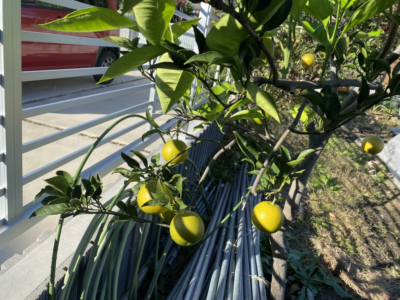 夏に実をつけていった柑橘たちが、少しずつ黄色やオレンジに染まりはじめました。