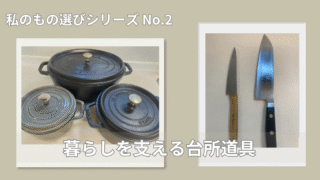 私のもの選び 私のもの選びシリーズ②暮らしを支える台所道具|Staubの鍋と包丁 「私のもの選びシリーズ」第2回。母への贈り物から自分の愛用品となったStaubの鍋と、20年近く使い続ける包丁。畑やジャム作りと同じように、大切な道具と長く付き合う暮らしについて綴ります。👉 クリックしたくなるように、 2025.09.18 私のもの選び