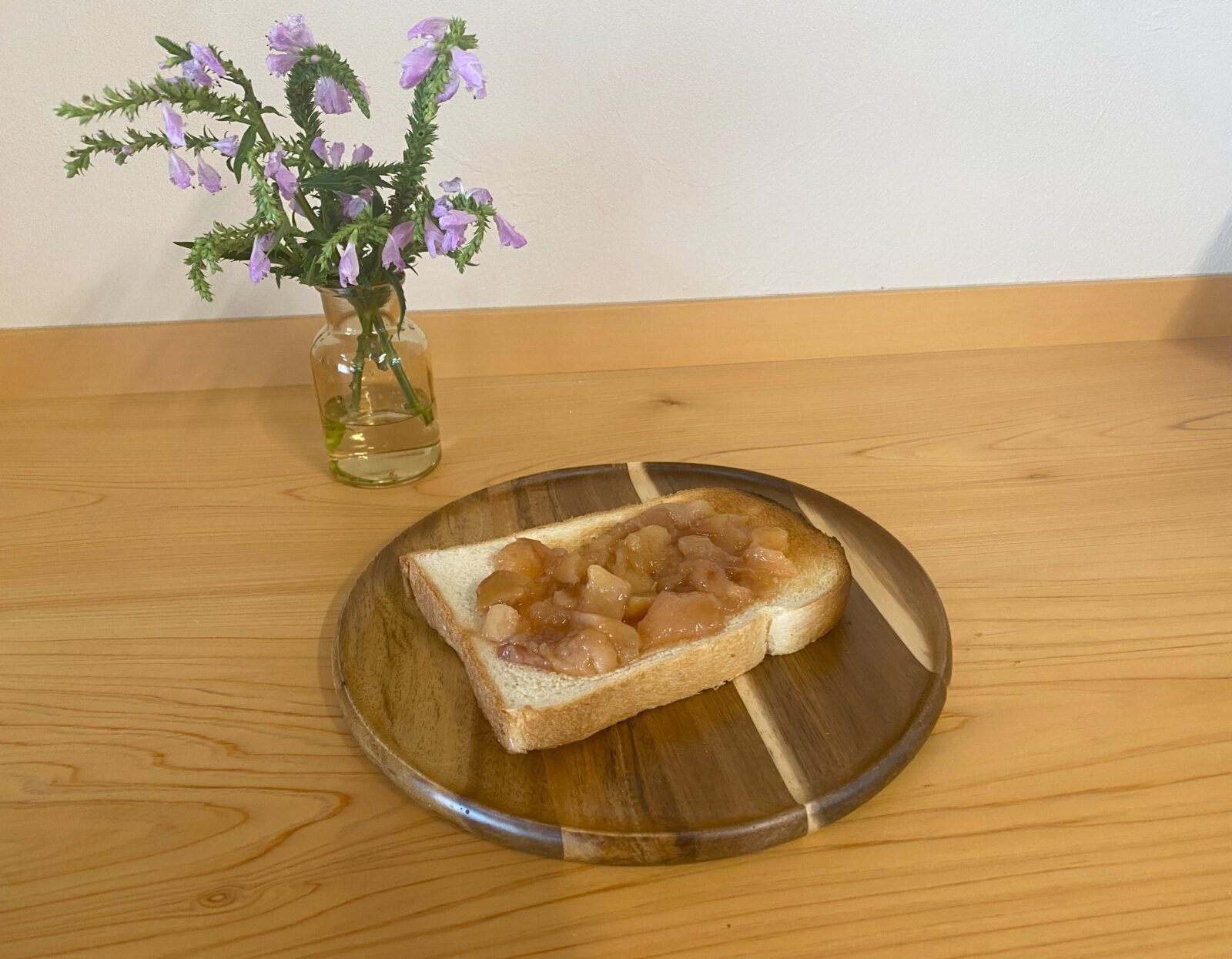 やさしい甘みの桃ジャムは、シンプルな食パンにたっぷり塗って。