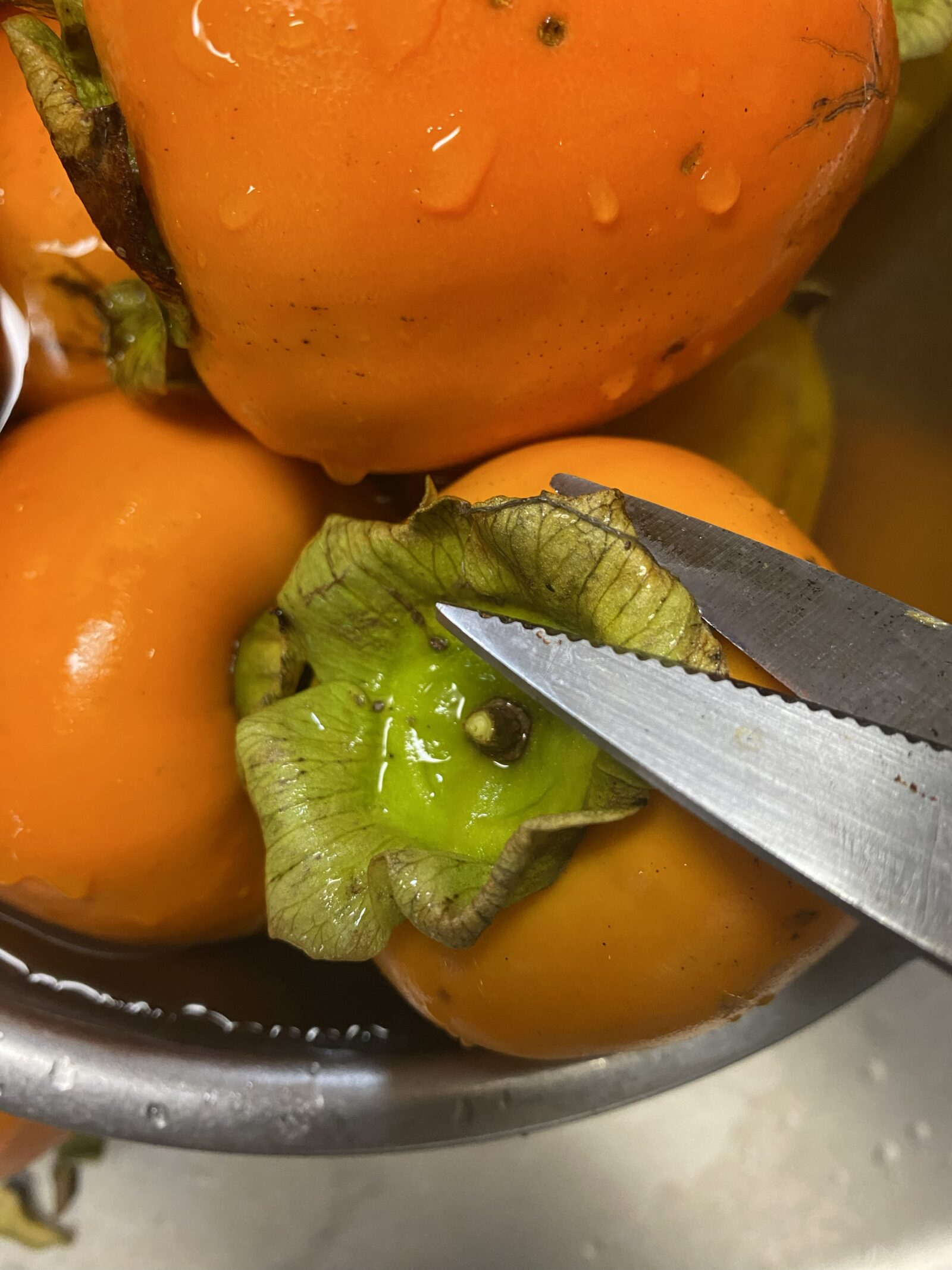 こぶし大ほどの立派な渋柿をいただき、まずはきれいに洗ってヘタを整えました。