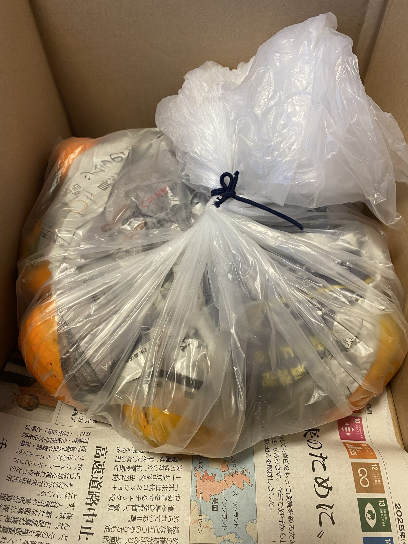 スーパーでもらった段ボール箱にビニール袋を敷き、