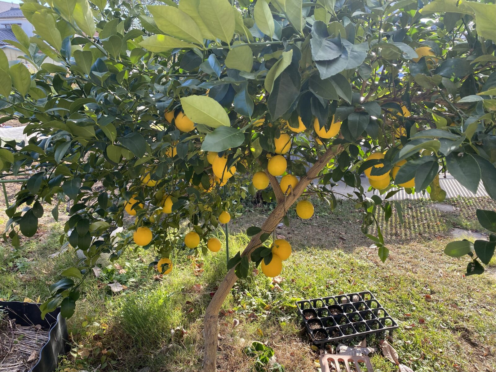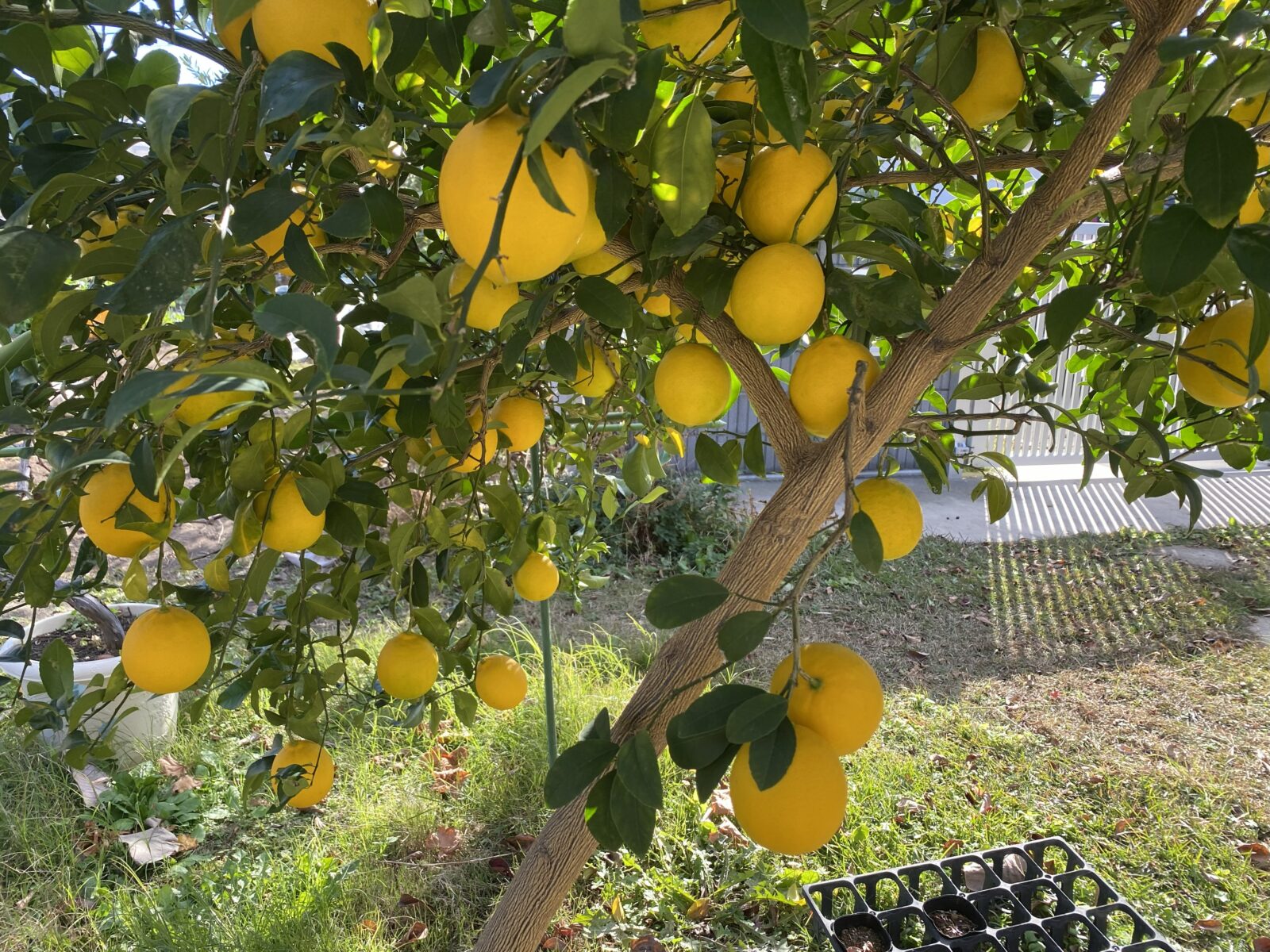 そしてふと横を見ると、レモンの木には黄色い実がたわわに。